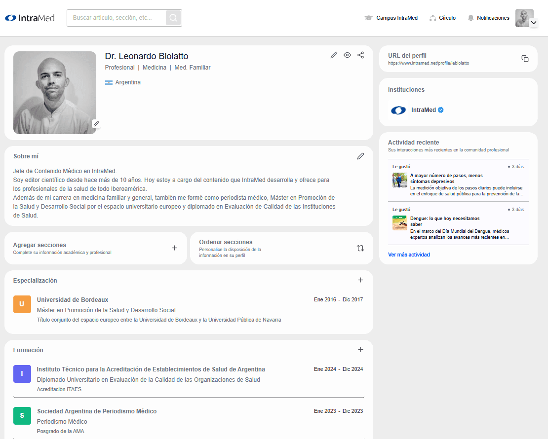 “IntraMed supera nuestras expectativas. Una plataforma de Educación Médica Continua que aporta temas de salud realmente útiles para la práctica clínica”